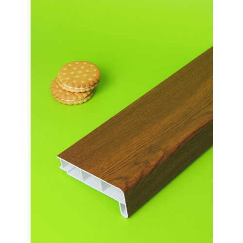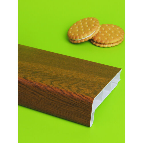 Подоконник пластиковый 100х700 мм Золотой дуб + комплект для монтажа (заглушка-1шт, подкладки 28х5-3шт, 32х3-3шт, саморезы 3.8х65-8шт)