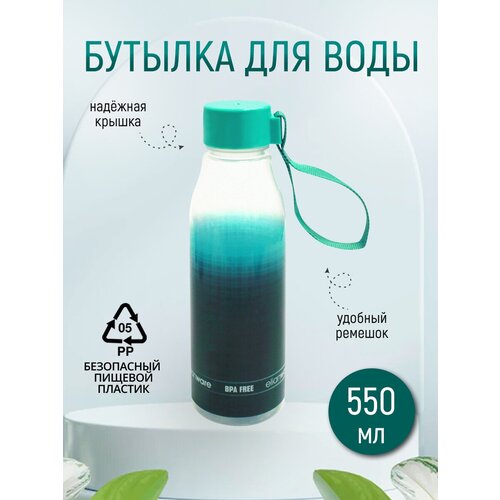 Бутылка для воды пластиковая, 19см, 400 мл, цвет серо-зеленый