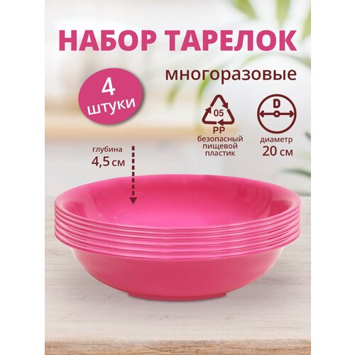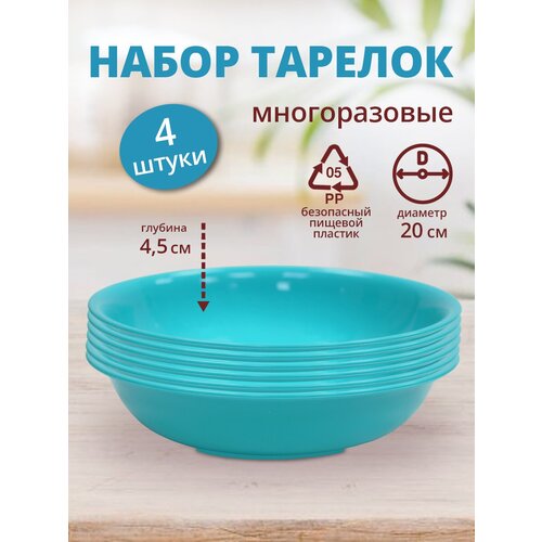 Набор тарелок глубоких, пластик, 20 см, 4 шт