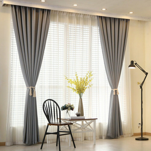 Комплект штор Elltextile Блэкаут-рогожка однотонный 500х280 см. Серый