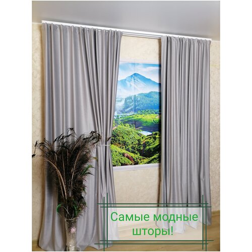 Комплект штор Elltextile Бархат однотонный 350х290 см.-2 шт. Светло-серый