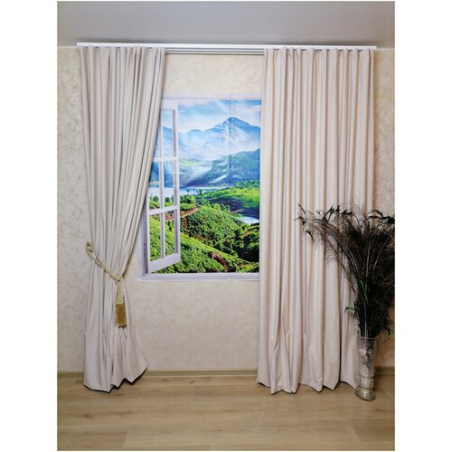 Комплект штор Elltextile Бархат однотонный 300х270 см. Шампань, молочный.