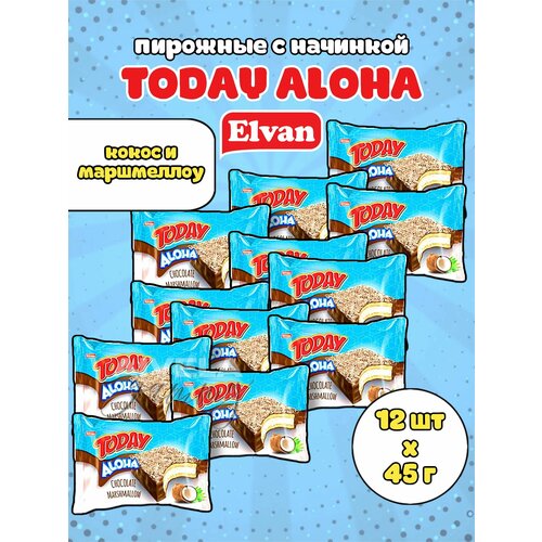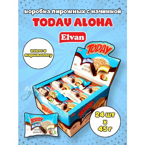 Elvan Today Aloha Coconut/ Взрослые и детские пирожные Тудэй с кокосом и маршмеллоу в шоколадной глазури с начинкой 12 шт