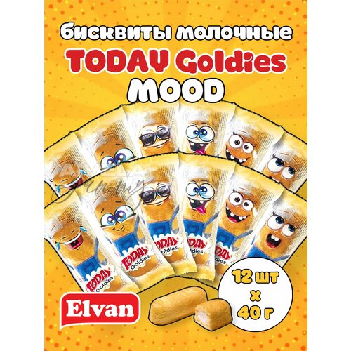 Elvan Today Goldies Mood/ Детские бисквиты с ванильной начинкой в индивидуальных упаковках в виде смайликов 12 пирожных