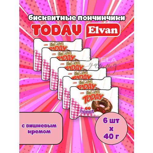 Elvan Today Donut Cherry/ Турецкие кексы с вишней / Пирожные в глазури с кремовой начинкой 6 пончиков в индивидуальных упаковках