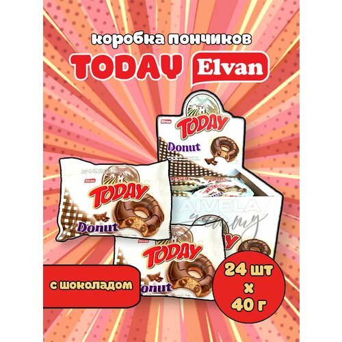 Elvan Today Donut Chocolate/ Тудэй пончик шоколад/ Кекс в глазури с шоколадной начинкой кремом 24 пирожных