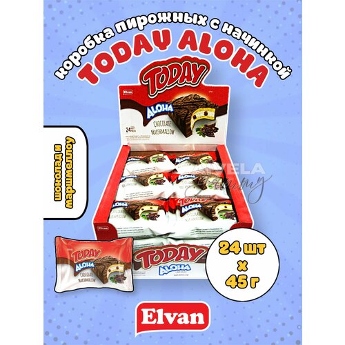 Elvan Today Aloha Chocolate/ Коробка бисквитных пирожных для детей и взрослых в глазури с маршмеллоу и шоколадом (24 индивидуальных упаковки)