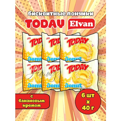 Elvan Today Donut Banana/ Пончики Тудэй Донат банан/ Детские кексы в глазури с банановой начинкой кремом 6 пирожных
