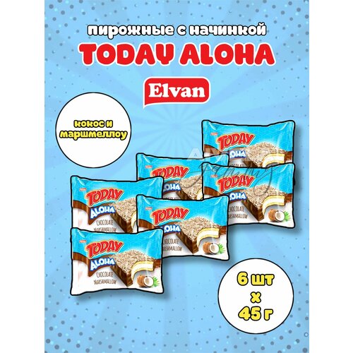 Elvan Today Aloha Coconut/ Взрослые и детские бисквиты с начинкой Тудэй Алоха с кокосом и маршмеллоу в шоколадной глазури 6 пирожных