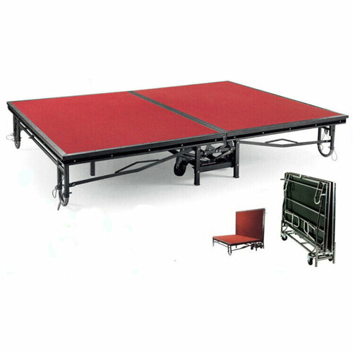 Мобильная складная сцена (подиум) на колесах (Ширина 1830 × длина 2440 × высота 410 (регулируемая до 610) + лестница для подиума 610 мм)