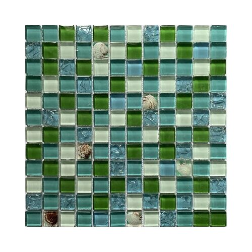 Мозаика стеклянная с натуральными раковинами в средиземноморском стиле (зеленый К2351)