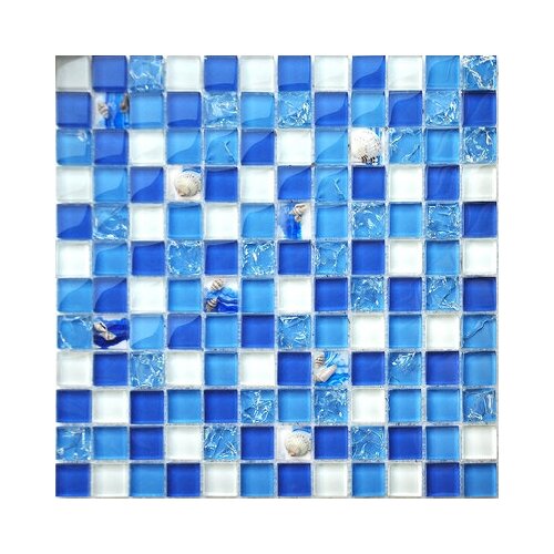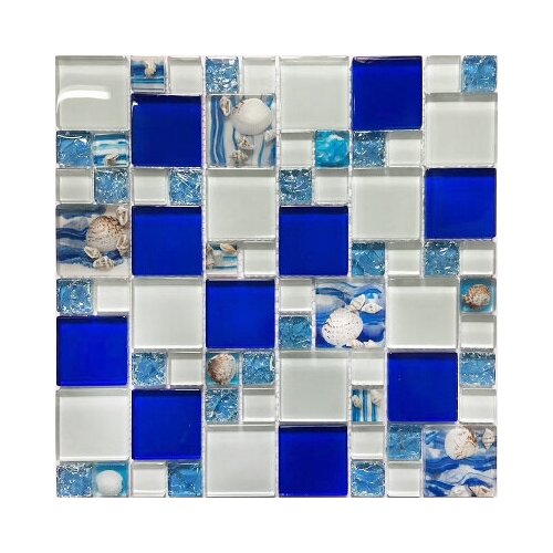 Мозаика стеклянная с натуральными раковинами в средиземноморском стиле (голубой К2305)