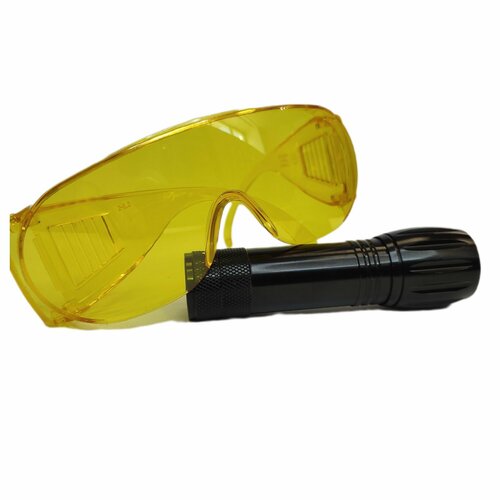 Набор для обнаружения утечек в системах кондиционирования Errecom UV-лампа Mini Bright Torch, питание 3 батарейки ААА, очки (RK1230)