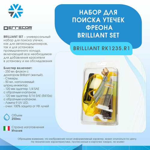 Набор для обнаружения утечек систем кондиционирования Errecom UV-краситель 250 мл, адаптер для картриджа, шприц 20 мл, UV-лампа, питание 12V, очки (RK1271.01)