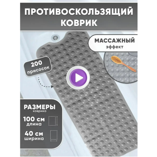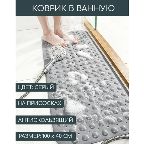 Коврик DELUXE HOME Антискользящий 40 х 100 см, 100х40 смна дно душевой кабины, серый