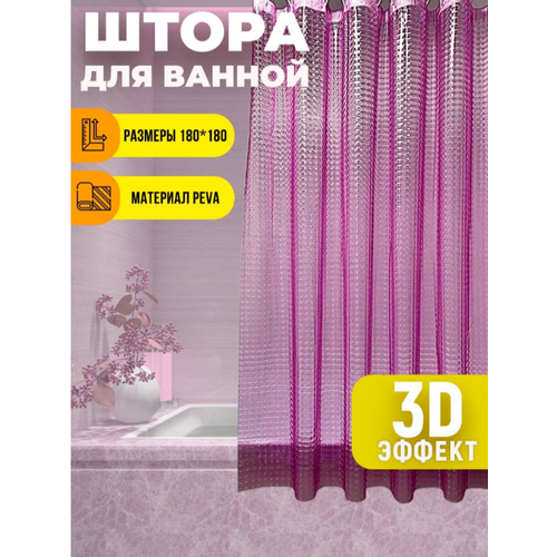 Штора для ванной DELUXE HOME комнаты с эффектом 3D, 180х180 см, розовая