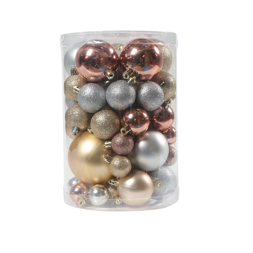 Набор пластиковых шаров серебристых, золотых, розовых 8 см Evillive, 48 шт