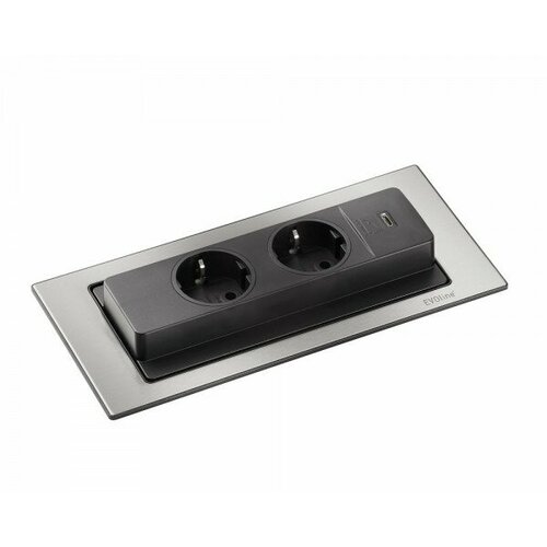 Розетка EVOline® BackFlip, 927.10.146, USB-C + 2х220в, нержавеющая сталь