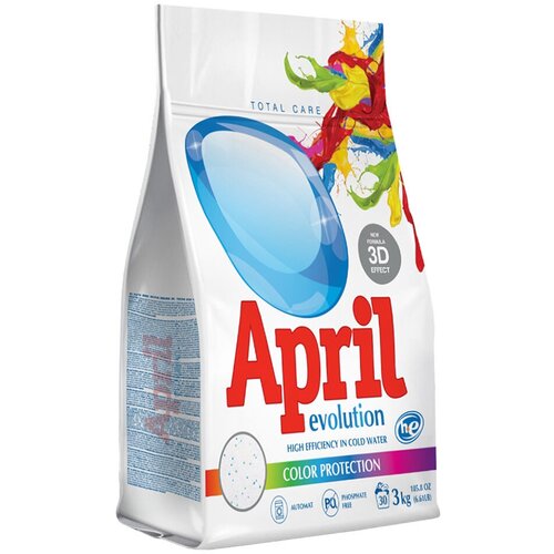 Порошок стиральный Evolution April / Эволюшн Април Color для цветного белья автомат 3кг / моющее средство