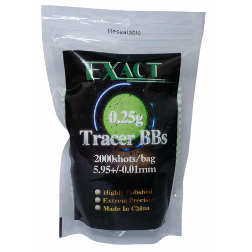 Шары страйкбольные Exact 0.25г. трассерные зеленые, 2000шт.