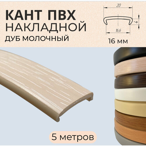 Мебельная кромка ПВХ кант накладной 16 мм Дуб молочный 5 м ДБ4819