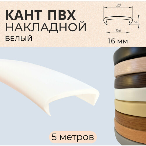 Кромка мебельная ПВХ/кант накладной 16 мм Белый 5 м