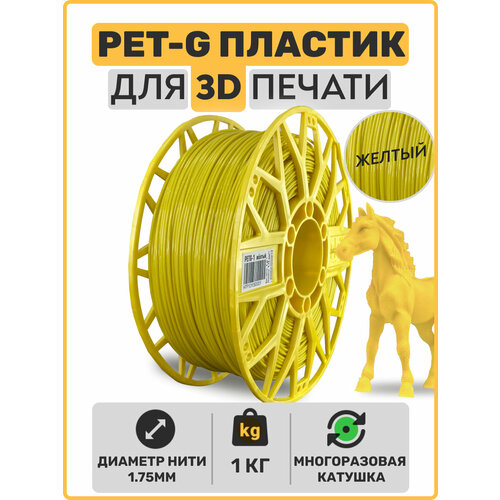 Пластик для 3D принтера PETG, Желтый, 1,75мм, 1 кг.