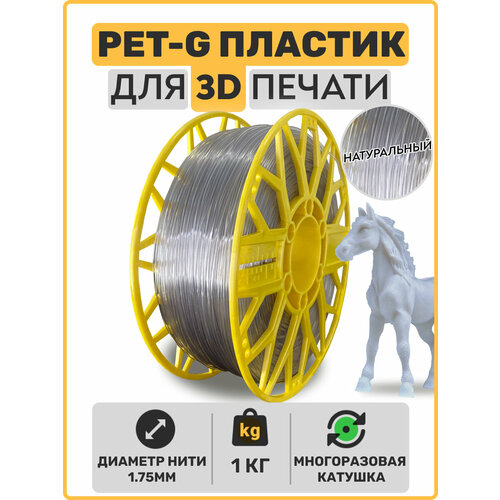 Пластик для 3D принтера PETG, Натуральный, 1,75мм, 1 кг.