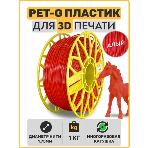 Пластик для 3D принтера PETG, Алый, 1,75мм, 1 кг.