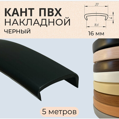 Мебельная кромка ПВХ кант накладной 16 мм Чёрная 5 м Ч5436