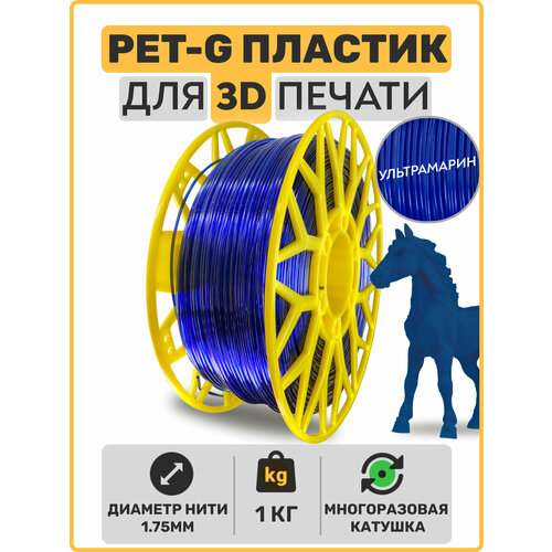 Пластик для 3D принтера PETG, Ультрамарин, 1,75мм, 1 кг.