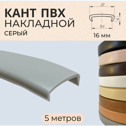 Кромка мебельная ПВХ/кант накладной 16 мм Серый 5 м