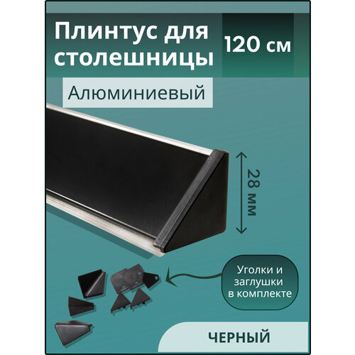 Плинтус кухонный для столешницы гладкий L-1,20 м чёрный+комплект заглушек