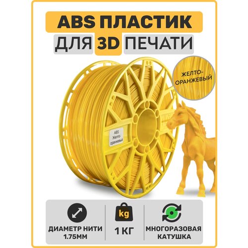 Пластик для 3D принтера ABS , Желто-оранжевый, 1,75мм, 1 кг.