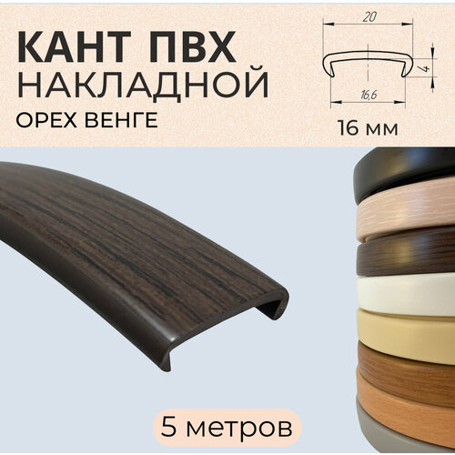 Кромка мебельная ПВХ/кант накладной 16 мм Орех венге 5 м