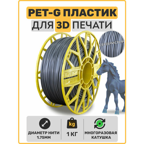 Пластик для 3D принтера PETG, Серебристый, 1,75мм, 1 кг.