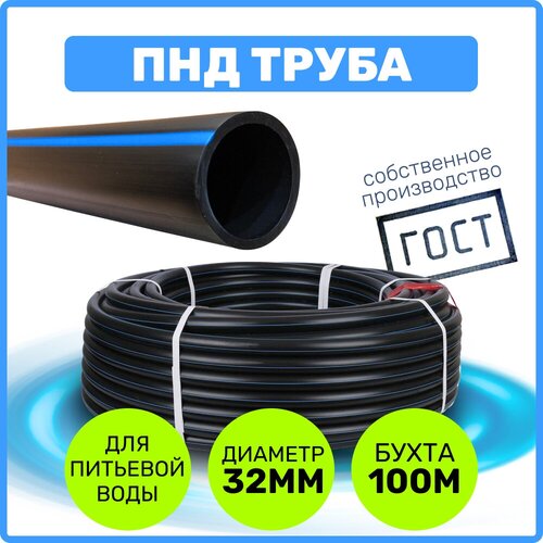Труба ПНД 32 мм x 3 мм x 100 метров водопроводная питьевая напорная