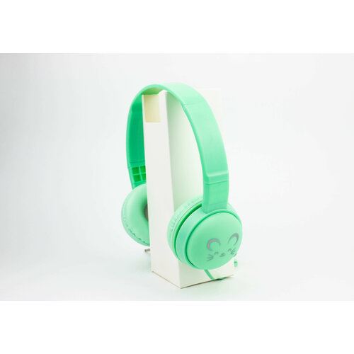 Наушники полноразмерные, детские, проводные с изображением Мышки, зеленые
