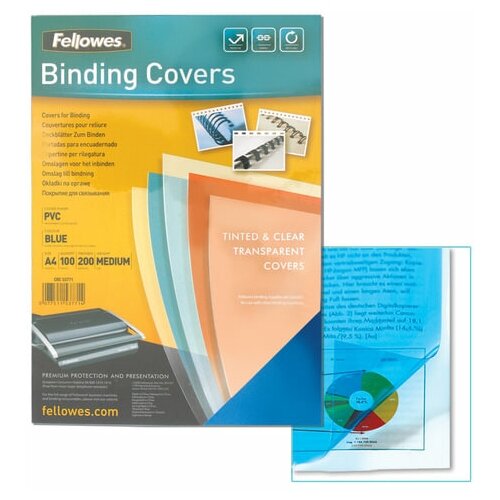 Обложки пластиковые для переплета А4 комплект 100 200 мкм прозрачно-синие FELLOWES, 1 шт
