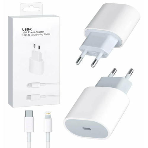 Сетевое зарядное устройство для айфона 25W с кабелем в комплекте / Быстрая зарядка для iPhone, iPad, AirPods / Power adapter 25W