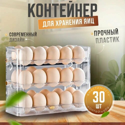 Контейнер для хранения яиц в холодильнике с откидными полками для 30 штук, цвет зелёный