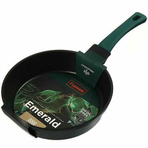 Сковорода алюминий, 26 см, антипригарное покрытие, Гурман, Emerald, черная, ГМ2601 EM, индукция