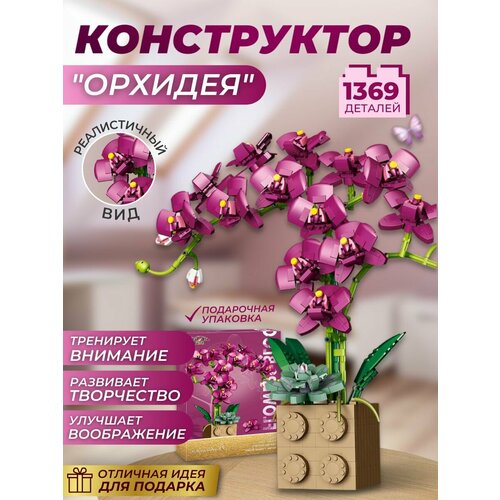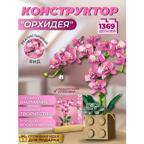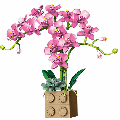 Конструктор, цветы, орхидея в горшке (Розовая) / конструктор детский