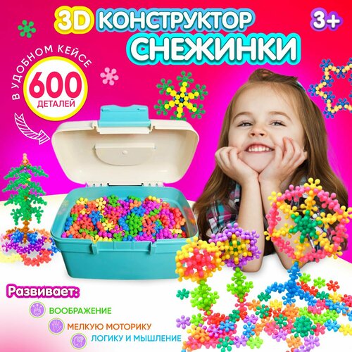 Конструктор развивающий, снежинки, 600 деталей / конструктор детский