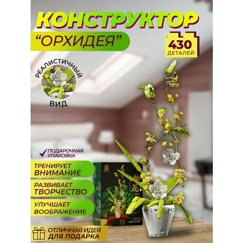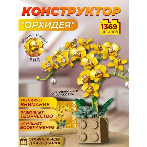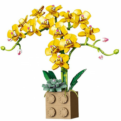 Конструктор, цветы, орхидея в горшке (Желтая) / конструктор детский