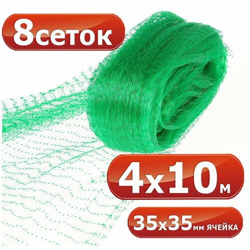 8 сеток от птиц 4х10 м, ячейка 35 х 35 мм / Сетка для защиты урожая