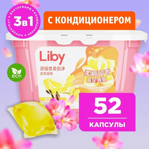 Liby Капсулы для стирки 3в1 "Softener" с Кондиционером Фрезия, 52 стирки