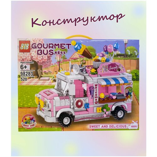 Конструктор для мальчика, для девочки, Магазин на колесах, автолавка с мороженым, 520 деталей