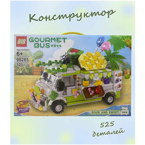 Конструктор для мальчика, для девочки, Магазин на колесах, автолавка с фруктами, 525 деталей, цвет зееленый