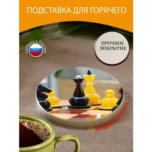 Подставка под горячее "Шахматы, шахматные фигуры, шахматная доска" 10 см. из блого мрамора